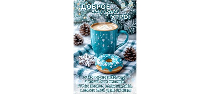 Открытка "Доброе морозное утро! Утро чудное настало, и мороз нам нипочем. Утром зимним наслаждайся..."
