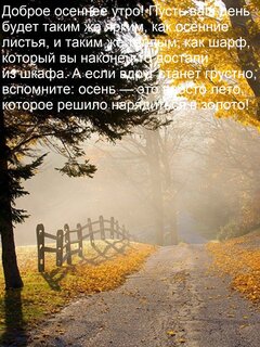 Открытка "Доброе осеннее утро! Пусть ваш день будет таким же ярким, как осенние листья, и таким же тёплым, как"