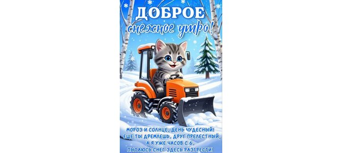 Открытка "ДОБРОЕ СНЕЖНОЕ УТРО! МОРОЗ И СОЛНЦЕ, ДЕНЬ ЧУДЕСНЫЙ! ЕЩЕ ТЫ ДРЕМЛЕШЬ, ДРУГ ПРЕЛЕСТНЫЙ, А Я УЖЕ ЧАСОВ"
