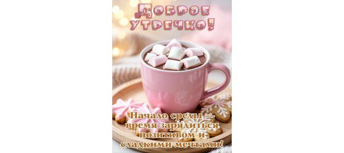 Открытка "Доброе утречко. Начало среды- время зарядиться позитивом и сладкими мечтами."