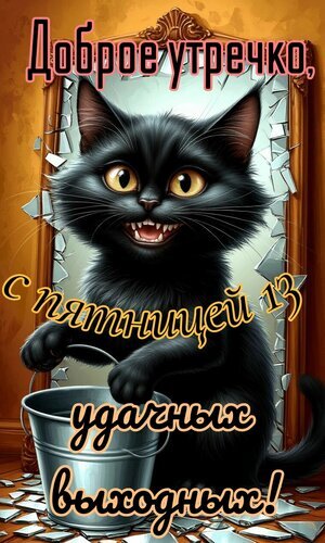 Открытка "Доброе утречко, с пятницей 13, удачных выходных"