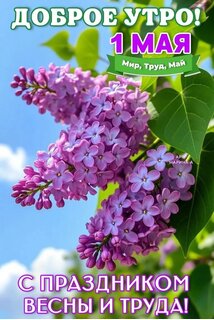 Открытка "ДОБРОЕ УТРО! 1 МАЯ. МИР, ТРУД, МАЙ! С ПРАЗДНИКОМ ВЕСНЫ И ТРУДА!"