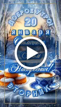 Видеооткрытка "Доброе утро! 20 января. Отличного Вам настроения! Вторник."