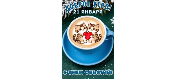 Открытка "ДОБРОЕ УТРО! 21 ЯНВАРЯ. С ДНЕМ ОБЪЯТИЙ!"