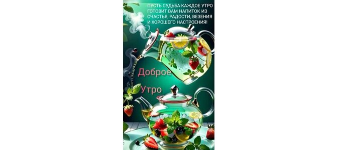 Пусть судьба каждое утро готовит вам напиток из счастья, радости, везения и хорошего настроения! Доброе утро.