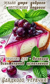Желаю утра доброго и настроения бодрого ! В течение дня - везения, всех планов исполнения! Сладкого утречка!