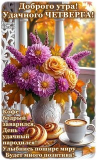Доброго утра! Удачного четверга! Кофе бодрый заварился, день удачный народился! Улыбнись пошире миру – будет много позитива!