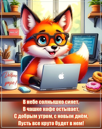 Доброе утро! В небе солнышко сияет, в чашке кофе остывает, с добрым утром, с новым днём, пусть все круто будет в нем!
