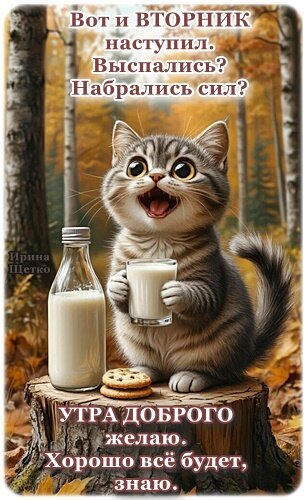 Вот и Вторник наступил. Выспались? Набрались сил? Утра доброго желаю. Хорошо всё будет, знаю.