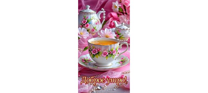 Красиво накрытый стол к завтраку, на котором стоит чашечка чая.