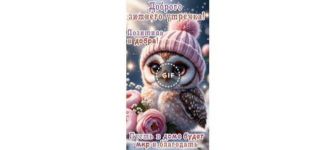 Теги:доброе утро, утро, цветы, сова, пушистик, анимация, гиф, пожелания на каждый день, мира и благодати, позитива и добра, зимнее утро, зима, снег