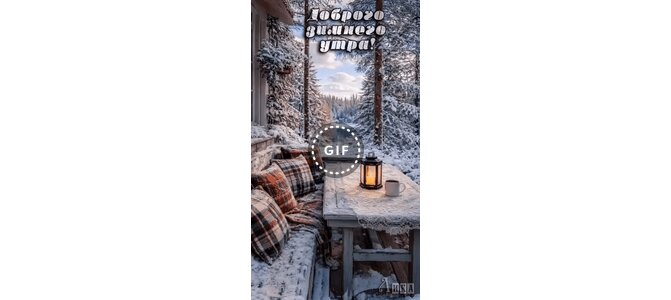 Теги:доброе утро, утро, зима, снег, гиф, анимация, красивая картинка, пожелания на каждый день, фонарь, лес, дом, пруд