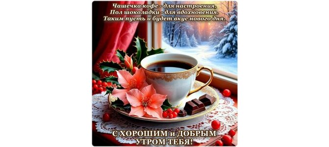 Чашечка кофе - для настроения, пол шоколадки - для вдохновения. Таким пусть и будет вкус нового дня. С хорошим и добрым утром тебя!