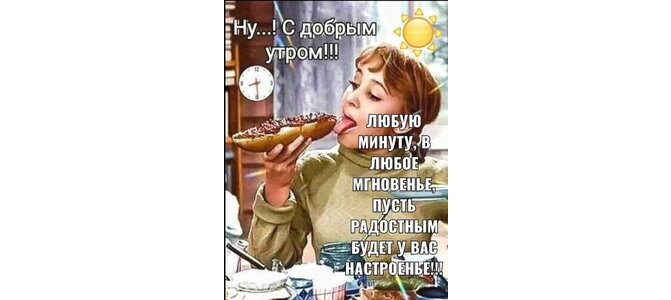 Ну...! С добрым утром! Любую минуту, в любое мгновенье пусть радостным будет у вас настроенье!