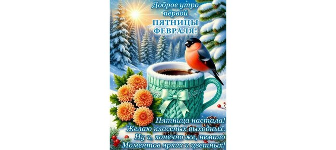 Доброе утро первой пятницы февраля! Пятница настала! Желаю классных выходных. Ну и, конечно же, немало моментов ярких и цветных!