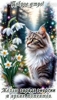 Теги:доброе утро, утро, кошка, лес, весна, пожелания на каждый день, красивая картинка, заряда энергии, ярких моментов, цветы, лесная кошка, пушистик