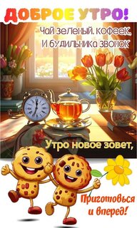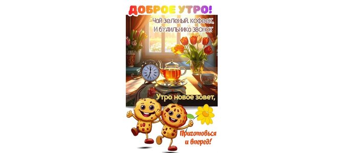 Доброе утро! Чай зеленый, кофеек, и будильника звонок. Утро новое зовет, приготовься и вперед!
