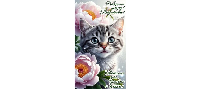 Теги:доброе утро, утро, пионы, цветы, котик, котенок, пушистик, милота, пожелания на каждый день, красивая картинка, улыбок, тепла, добра