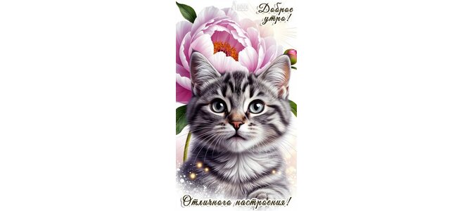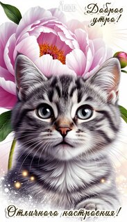 Теги:доброе утро, утро, котик, котенок, пушистик, милота, цветок, пион, красивая картинка, пожелания на каждый день, отличного настроения