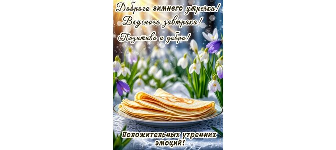 Теги:доброе утро, утро, блины, масленица, цветы, подснежники, красивая картинка, пожелания на каждый день, позитива, добра, положительных эмоций, вкусного завтрка, снег