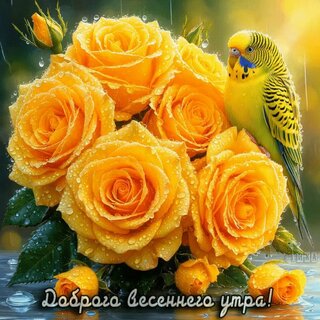 Теги:доброе утро, утро, гифка, анимация, цветы, розы, дождь, птичка, попугай, пожелания на каждый день, красивая анимация