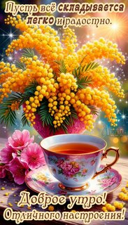 Теги:доброе утро, утро, весна, пожелания на каждый день, красивая картинка, отличного настроения, чай, мимоза, цветы, пусть все складывается легко