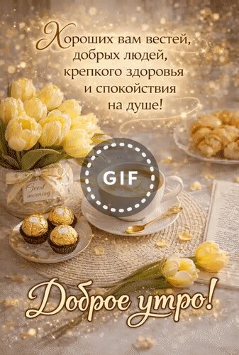 Теги:доброе утро, утро, кофе, цветы, гифка, анимация, пожелания на каждый день, конфелы, сладкое тюльпаны, булочки, красивая анимация