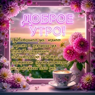 Удивительного дня, полного радости и успешных дел. Пусть все задуманное сбывается легко и быстро, а настроение будет прекрасным на протяжении всего дня!