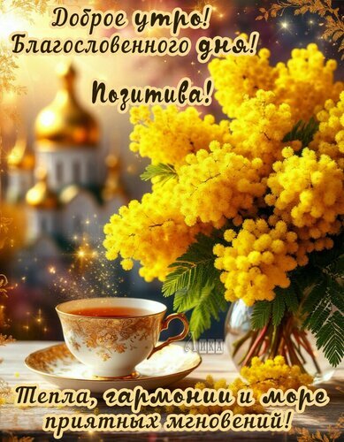 Теги:доброе утро, утро, цветы, мимоза, церковь, собор, красивая картинка, пожелания на каждый день, тепла, гармонии, приятных мгновений, чай