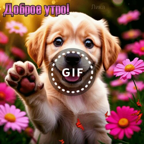 Теги:доброе утро, утро, цветы, щенок, герберы, ромашки, гифка, анимация, красивая анимация, пожелания на каждый день, бабочки