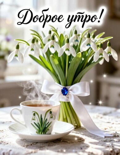 Теги:доброе утро, утро, цветы, подснежники, чай, красивая картинка, пожелания на каждый день, весна