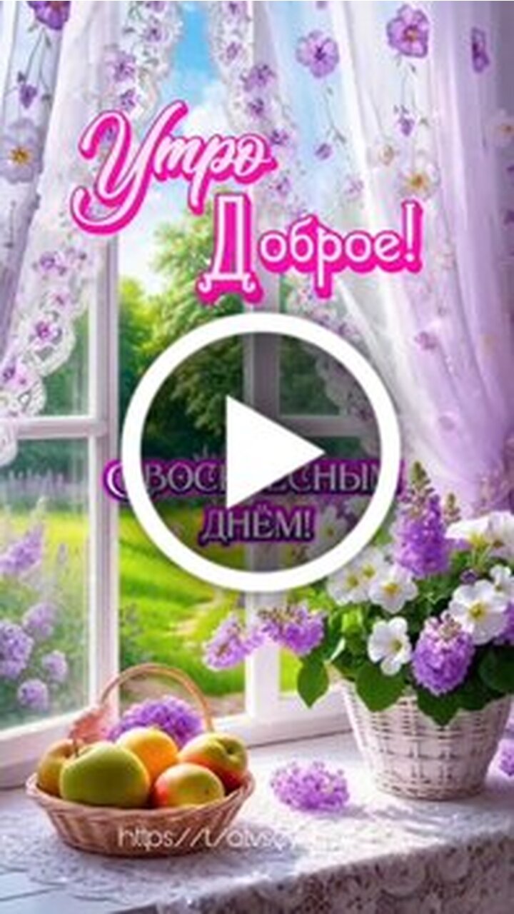 Красивое и вдохновляющее видео для пожелания доброго воскресного утра. Сюжет представляет собой серию эстетичных кадров с уютной атмосферой. Сначала зритель видит залитый солнцем подоконник с корзиной фруктов и нежными фиолетовыми цветами на фоне весеннего сада. Затем сцена сменяется аппетитным десертом из клубники и сливок, символизирующим сладкое начало дня. Завершается видео пышным букетом розовых пионов в корзине с маленькой птичкой, сопровождаемым теплыми словами пожеланий светлого пути к мечте и улыбок от всего мира. Идеально подходит для отправки близким в качестве доброго приветствия.