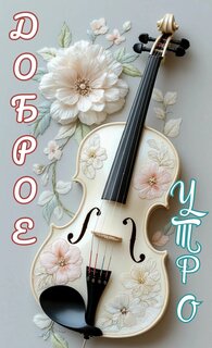 Эстетичное и нежное изображение скрипки кремового цвета, украшенной изысканными цветочными мотивами в пастельных тонах. На картинке присутствует вдохновляющая надпись «Доброе утро» крупным шрифтом, что делает её идеальной для использования в качестве поздравительной открытки. Композиция сочетает в себе классический музыкальный инструмент и мягкую флористическую эстетику, создавая атмосферу спокойствия, гармонии и утреннего вдохновения. Подходит для социальных сетей, мессенджеров и личных поздравлений.