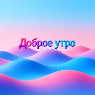 Абстрактное и эстетичное изображение с надписью «Доброе утро» на фоне плавных, волнообразных холмов в пастельных розовых и голубых тонах. Картинка выполнена в стиле мягкого градиента и сюрреалистичного пейзажа, создавая ощущение спокойствия, уюта и позитивного начала дня. Идеально подходит для использования в качестве приветственной открытки, обоев для рабочего стола или контента для социальных сетей в эстетике Dreamcore или Vaporwave.
