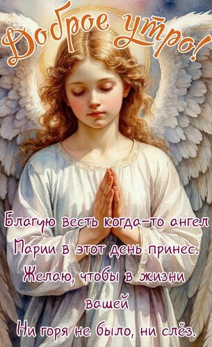 Открытка "Доброе утро. Благую весть, когда-то ангел Марии в этот день принёс"