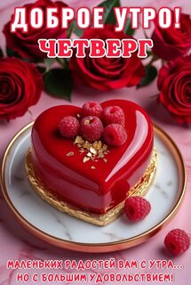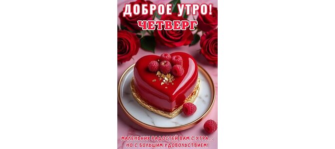 Открытка "Доброе утро! Четверг. Маленьких радостей вам с утра... но с большим удовольствием!"
