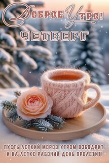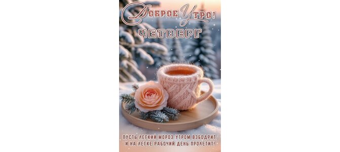 Открытка "Доброе утро! Четверг. Пусть легкий мороз утром взбодрит, и на легке рабочий день пролетит!"