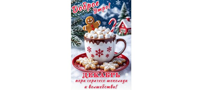 Открытка "ДОБРОЕ УТРО! ДЕКАБРЬ ПОРА ГОРЯЧЕГО ШОКОЛАДА И ВОЛШЕБСТВА!"