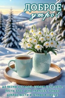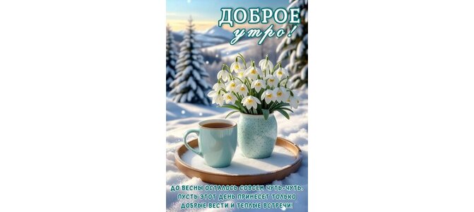 Открытка "ДОБРОЕ УТРО! ДО ВЕСНЫ ОСТАЛОСЬ СОВСЕМ ЧУТЬ-ЧУТЬ. ПУСТЬ ЭТОТ ДЕНЬ ПРИНЕСЕТ ТОЛЬКО ДОБРЫЕ ВЕСТИ И ТЕПЛ"