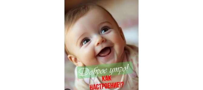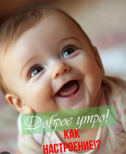 Щедрая улыбка ребёнка. Надпись на открытке "Доброе утро! Как настроение!?"