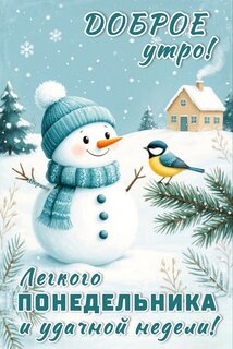 Теги:зима, доброе утро, понедельник, дни недели, снеговик