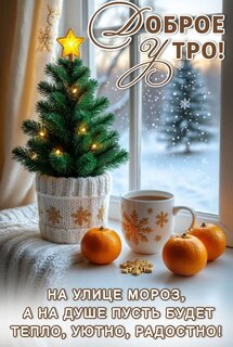Открытка "Доброе утро! На улице мороз, а на душе пусть будет тепло, уютно, радостно!"