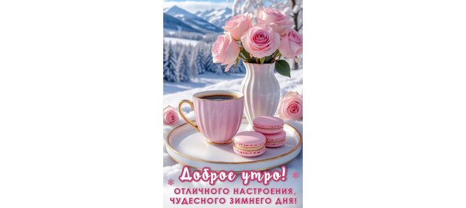 Открытка "ДОБРОЕ УТРО! ОТЛИЧНОГО НАСТРОЕНИЯ, ЧУДЕСНОГО ЗИМНЕГО ДНЯ!"