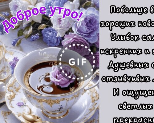Анимированная открытка "Доброе утро! Побольше всем хороших новостей, улыбок самых искренних и ясных, душевных слов,"