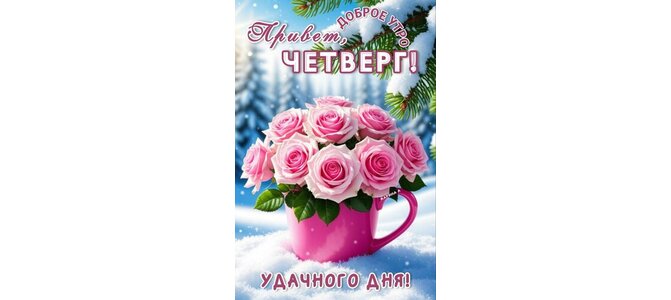 Открытка "ДОБРОЕ УТРО! ПРИВЕТ, ЧЕТВЕРГ! УДАЧНОГО ДНЯ!"