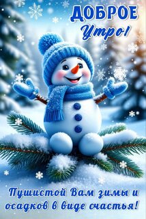 Открытка "Доброе утро! Пушистой вам зимы и осадков в виде счастья!"