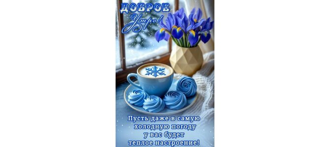 Открытка "ДОБРОЕ УТРО! ПУСТЬ ДАЖЕ В САМУЮ ХОЛОДНУЮ ПОГОДУ У ВАС БУДЕТ ТЕПЛОЕ НАСТРОЕНИЕ!"