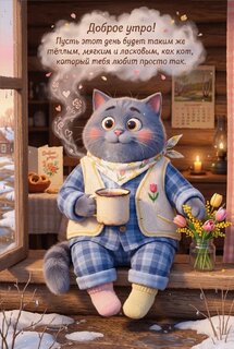 Доброе утро! Пусть этот день будет таким же тёплым, мягким и ласковым, как кот, который тебя любит просто так.