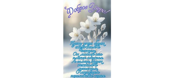Доброе утро. Пусть утро будет сказочным и чистым, от мыслей нас плохих оберегая. А солнце будет нежным и лучистым, с морозцем переливами играя.