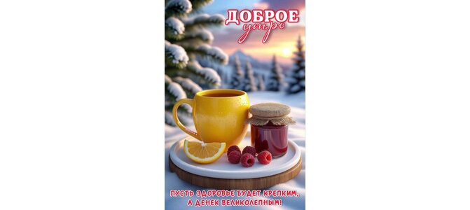 Открытка "ДОБРОЕ УТРО! ПУСТЬ ЗДОРОВЬЕ БУДЕТ КРЕПКИМ, А ДЕНЕК ВЕЛИКОЛЕПНЫМ!"